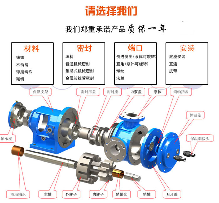 5、带保温夹套的高粘度泵,使用前先通热源进行循环,待温度达到工艺要求后再启动泵。